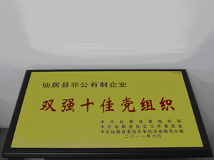 | 公司黨支部被評為臺(tái)州市市級非公有制企業(yè)“雙強(qiáng)五十佳”黨組織 日期:[2011/07/11] |