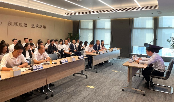 保利置業(yè)黨委副書記、工會主席貢毅敏為黨建聯(lián)系點(diǎn)單位江蘇公司、浙江公司廣大黨員、團(tuán)員青年及統(tǒng)戰(zhàn)對象講授《老問題與新答案:跳出歷史周期率的時代解答》專題黨課暨團(tuán)課,從“何為歷史周期率、破解之道是什么、‘兩個答案’的實(shí)踐指向”三方面,深入系統(tǒng)地講解了對“歷史周期率”的理解,對兩地公司黨建“賦能”發(fā)展工作提出指導(dǎo)性意見。