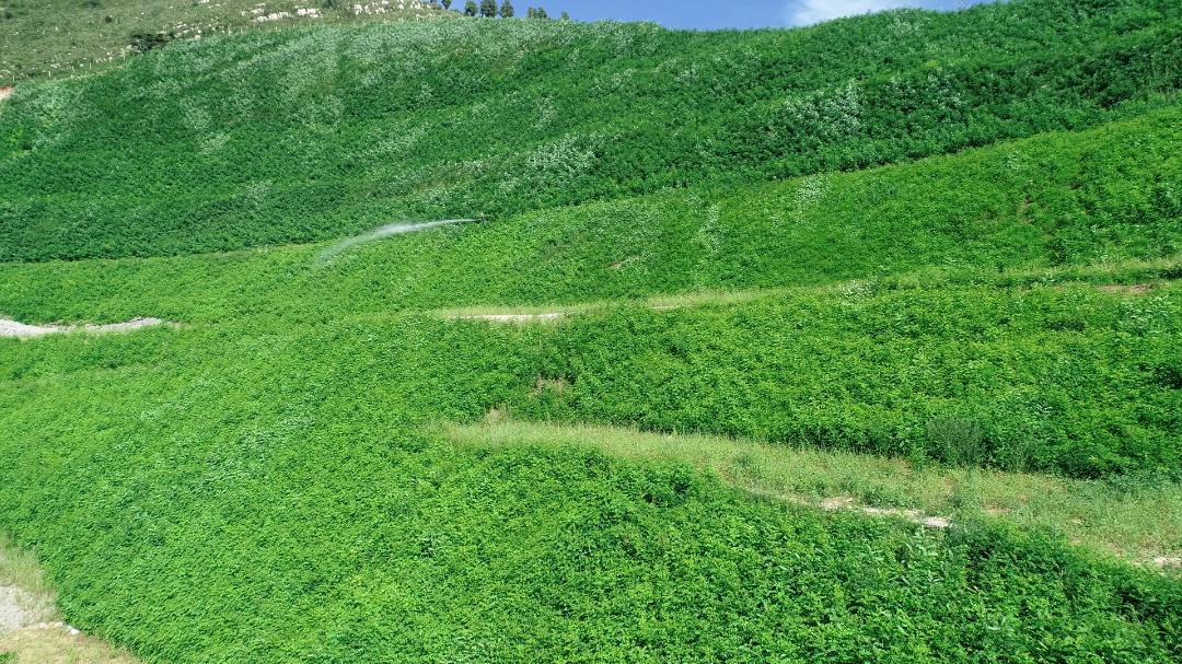公司以國際先進(jìn)的爆破和綠化技術(shù)為支撐恢復(fù)礦山自然生態(tài)和人文生態(tài),以科技創(chuàng)新為依托實(shí)現(xiàn)精細(xì)化管控,形成“一個示范項(xiàng)目、兩大片區(qū)項(xiàng)目、三批單體項(xiàng)目”治理計劃,積極開展治理修復(fù)工作,以實(shí)際行動爭做“綠水青山就是金山銀山理念的積極傳播者和模范踐行者”。“一個示范項(xiàng)目”即東山秀清項(xiàng)目采用清理浮石、梯級放坡、掛網(wǎng)噴播等工程措施,消除地質(zhì)災(zāi)害隱患。在坡面種植刺槐、火炬樹等植被,治理坡面面積8.33萬平米;通過場地整理、覆土綠化等措施,治理宕底面積9.47萬平米。兩大片區(qū)項(xiàng)目臺階成型,噴播綠化治理已見成效,已完成低洼區(qū)回填139.28萬立方,格構(gòu)護(hù)坡0.53萬平米,砌筑擋墻1625.18立方,覆土12.98萬平米,掛網(wǎng)噴播45621平米,種植灌木松樹,爬山虎4994株,播撒草籽、花籽3.6萬平米。三批單體項(xiàng)目結(jié)合各廢棄礦山特點(diǎn)單獨(dú)設(shè)計、治理,消除地質(zhì)災(zāi)害隱患的同時,根據(jù)宜耕則耕、宜林則林、宜草則草的原則,恢復(fù)成旱地、林地或草地。2019年治理完成14處,完成治理面積96.33萬平米;2020年治理完成14處,完成治理面積95.50萬平米;2021年治理完成4處,完成治理面積31.74萬平米。