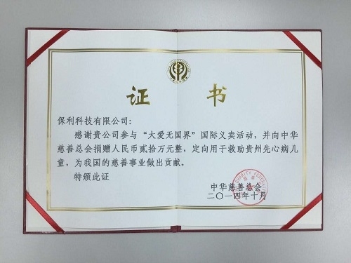 第六屆“大愛(ài)無(wú)國(guó)界”公益活動(dòng)由王毅外長(zhǎng)夫人錢(qián)韋女士發(fā)起,其宗旨是凝聚中外各界愛(ài)心,幫扶貧困地區(qū)人民和社會(huì)弱勢(shì)群體改善生活。在2014年10月19日舉行的國(guó)際義賣(mài)活動(dòng)中,保利科技捐款20萬(wàn)元人民幣。參與此項(xiàng)公益活動(dòng),是公司為我國(guó)慈善事業(yè)做出的又一項(xiàng)積極貢獻(xiàn)。