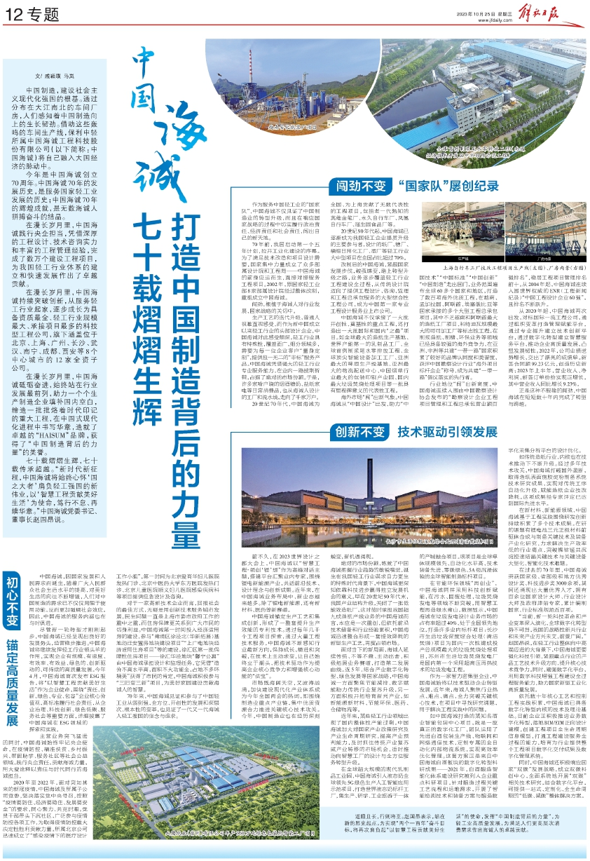 《解放日?qǐng)?bào)》專版聚焦中國(guó)海誠(chéng)七十年