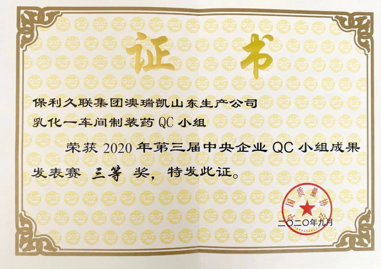 近日,由國務院國資委科創(chuàng)局指導、中國質量協會主辦的第三屆中央企業(yè)QC小組成果發(fā)表賽以在線方式成功舉辦。保利久聯集團澳瑞凱山東公司《運用QC方法降低JWL-III型膠狀乳化炸藥生產線廢品率》課題榮獲三等獎。