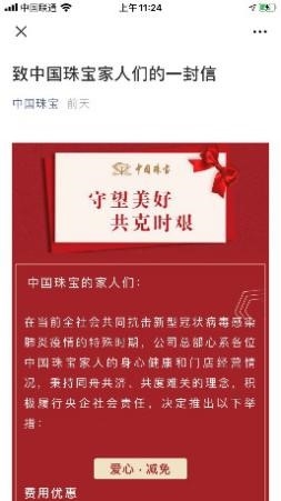 (中國珠寶發(fā)布《致中國珠寶家人們的一封信》宣布優(yōu)惠政策)