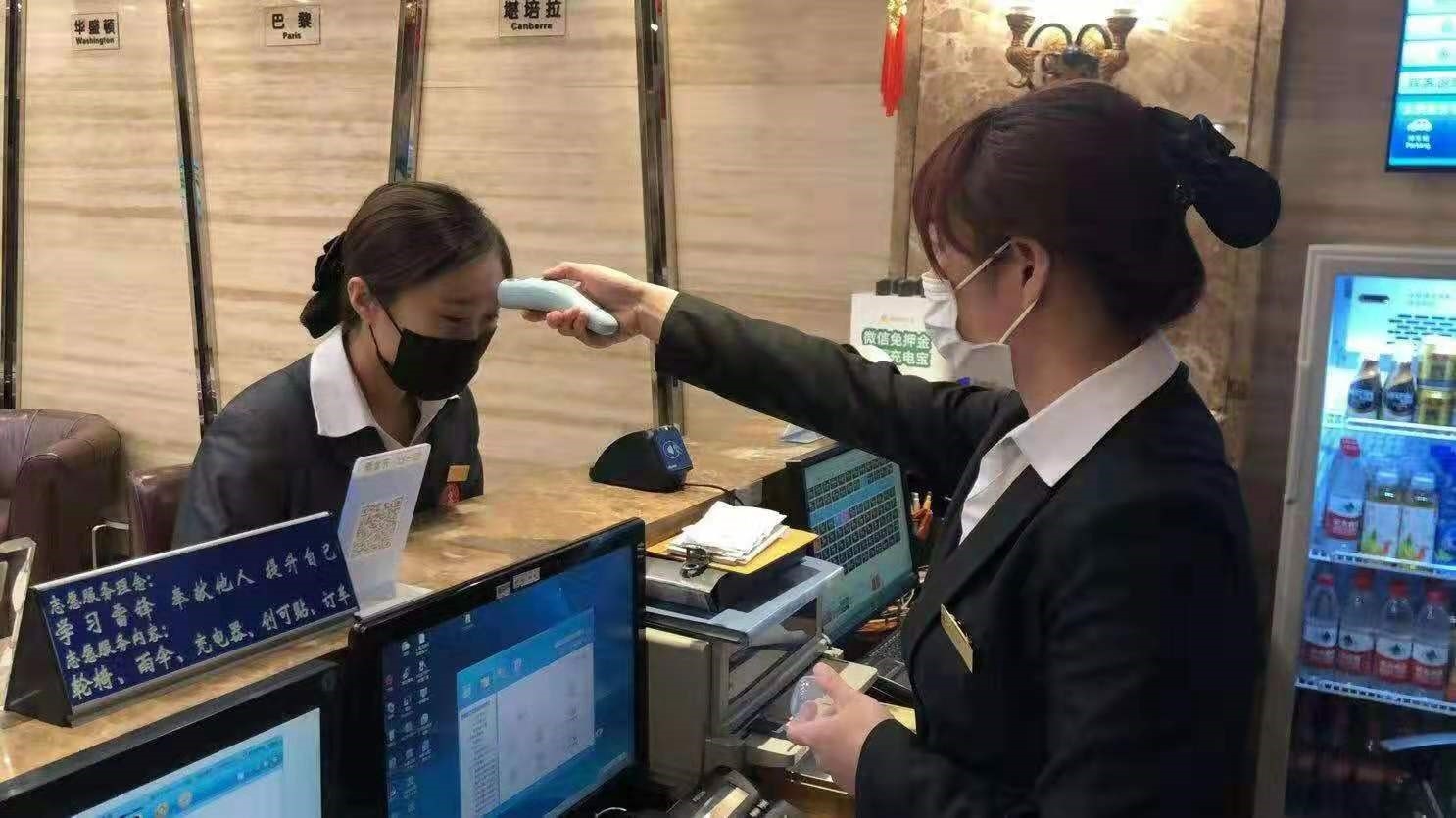 (中藝瑞寶酒店測量上崗員工體溫)
