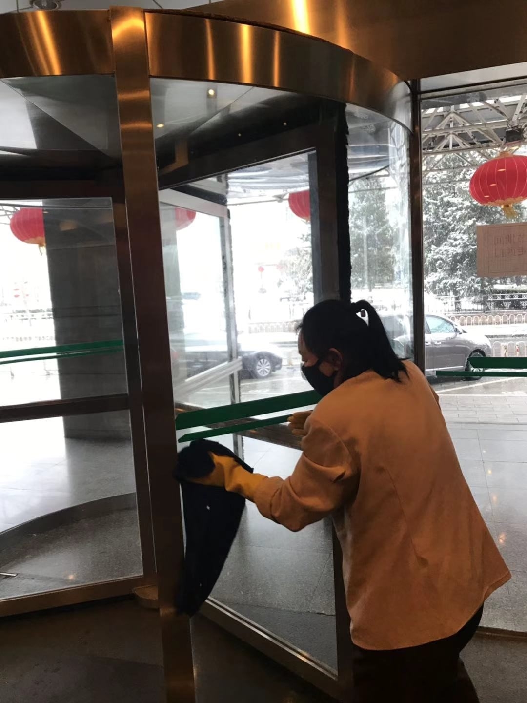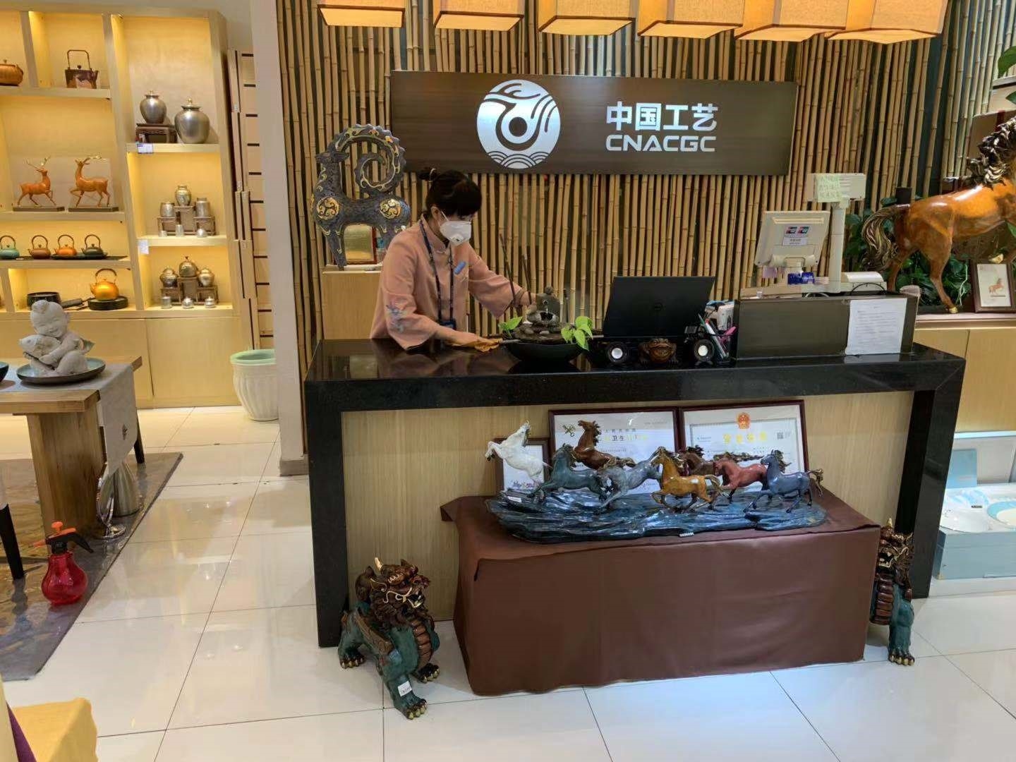 (“中國工藝”品牌王府井店員工進行定時消毒)