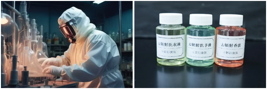 核工業(yè)日常操作中,放射性元素沾污會(huì)帶來(lái)環(huán)境污染,損傷操作人員身體健康。為了填補(bǔ)國(guó)內(nèi)核工業(yè)日常清洗專用洗滌產(chǎn)品的空白,降低操作中可能的污染與損害,保利中輕下屬中國(guó)日化院十余年來(lái)持續(xù)探索,研發(fā)出放射性污染物去除用復(fù)合表面活性劑。該成果可有效去除體表及織物表面的放射性污染物,加增一層“密不透風(fēng)”的防護(hù)罩。目前該技術(shù)已應(yīng)用于核電、核醫(yī)學(xué)科、航空航天等涉核領(lǐng)域,發(fā)揮出良好的清潔效果。