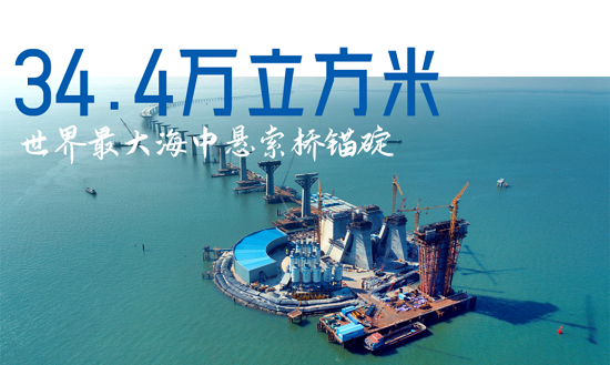 為確保工程質(zhì)量,保利長(zhǎng)大自主研發(fā)關(guān)鍵技術(shù),打造世界最大海中懸索橋錨碇,單個(gè)錨碇混凝土方量約34.4萬(wàn)立方米,重量高達(dá)100萬(wàn)噸,在海中立下“定海神針”。